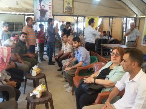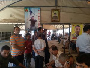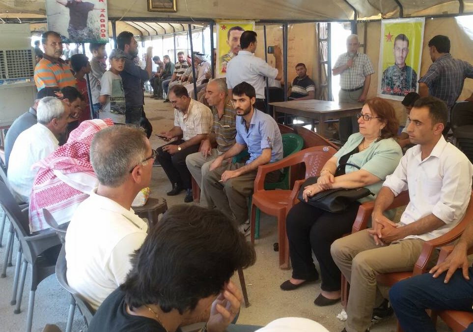 2017-07-25قامت الرئيسة المشتركة لهيئة العلاقات الخارجية سهام قريو بالمشاركة مع مندوبين من هيئة التربية, السياحة والشباب بتقديم العزاء في خيمة عزاء الشهداء, وذلك في مدينة سري كانييه الأحد 23/7/2017.