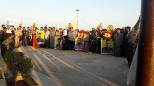 2017-08-13قامت الرئيسة المشتركة لهيئة العلاقات الخارجية السيدة سهام قريو ضمن وفد الإدارة الذاتية الديمقراطية والمؤلف من السادة: الرئيس المشترك لهيئة التربية محمد صالح عبدو, الرئيس المشترك للمجلس التشريعي حكم خلو و النائب المشترك لرئاسة المجلس التنفيذي د. حسين عزام بالمشاركة في تشييع خمس شهداء من المكونين الكردي والعربي, وذلك في مدينة الحسكة 10/8/2017.
