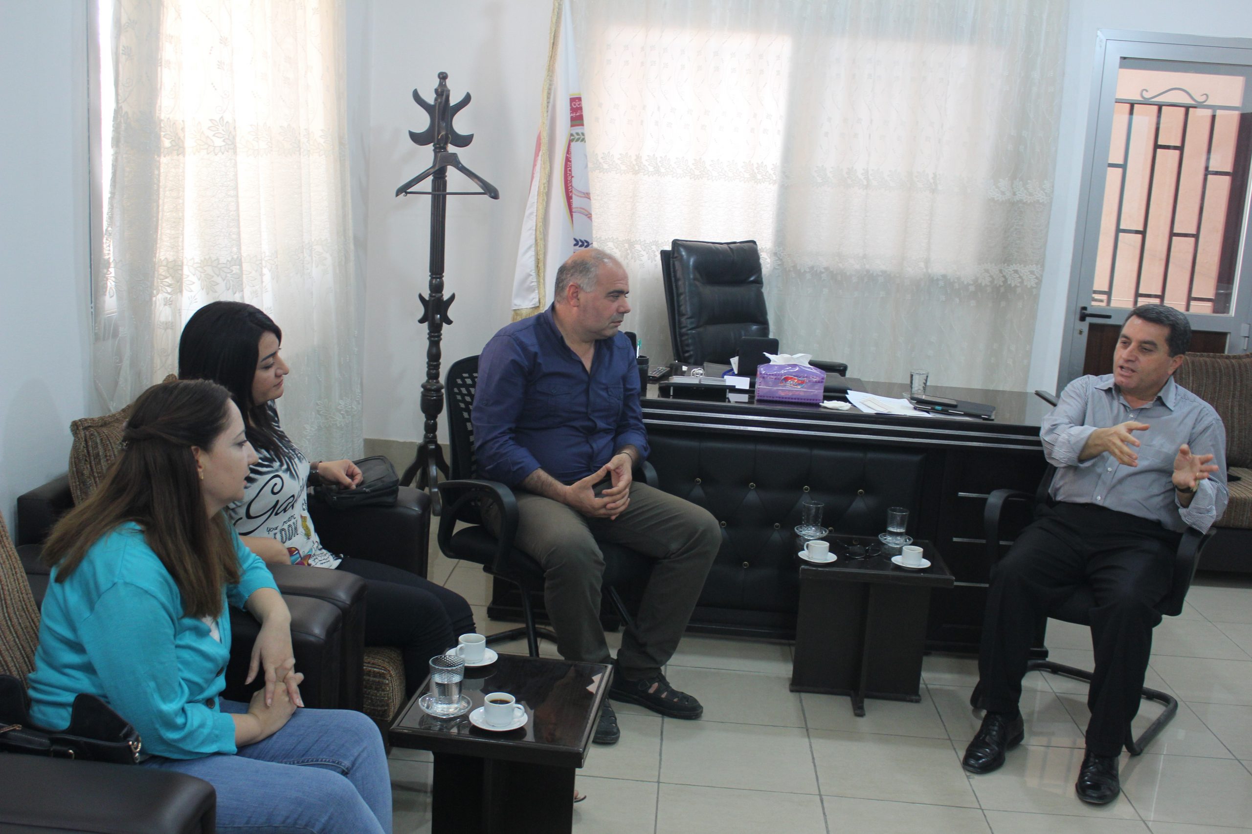 2017-08-19قام رئيس المجلس التنفيذي السيَد عبد الكريم صاروخان صباح يوم 13/8/2017, بزيارة لهيئة العلاقات الخارجية وذلك للاطَلاع على عمل الهيئة, حيث تم استقباله بحفاوة و رحابة صدر من قبل الرئيس المشترك لهيئة الخارجية د. عبد الكريم عمر والنائب المشترك له السيَد فنر الكعيط. تم خلال اللقاء مناقشة سير العمل في الهيئة بشكل عام.