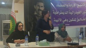 2017-09-12قامت هيئة العلاقات الخارجية متمثلة بنائبة الرئاسة المشتركة للهيئة بالمشاركة في الاجتماع الموسع للمرأة على مستوى المقاطعة والذي عُقد في 12/9/2017 بحضور الرئيسة المشتركة للمجلس التأسيسي الديمقراطي لفدرالية شمال سوريا الرفيقة هدية يوسف, تركز الاجتماع على توضيح دور المرأة في الانتخابات وفدرالية شمال سوريا.