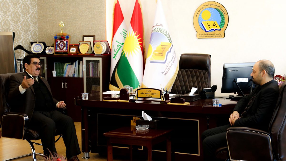 جاء ذلك خلال زيارة أجراها الممثل المشترك للإدارة الذاتية الديمقراطية في جنوب كردستان “د. جاويدان حسن”، وأعضاء الهيئة الإدارية للممثلية “جميل رحمانو” و”سلافا سليمان” صباح يوم 3/12/2017 الى جامعة التنمية البشرية في مدينة السليمانية.