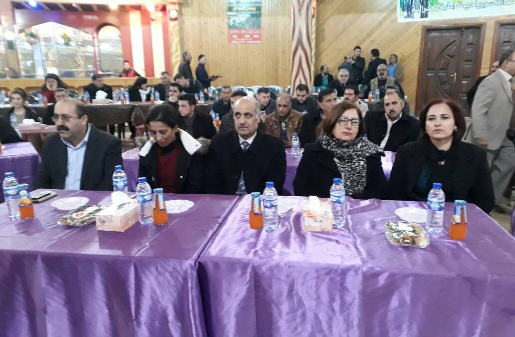 2018-01-22قامت الرئاسة المشتركة لهيئة العلاقات الخارجية سهام قريو ود. عبد الكريم عمر بالمشاركة في احتفالية مرور الذكرى الرابعة على تأسيس الإدارة الذاتية الديمقراطية وذلك في منتجع بيلسان التابع لناحية عامودا في 21/1/2018, تضمنت الاحتفالية إلقاء كلمة من قبل رئيس المجلس التنفيذي السيًد عبد الكريم صاروخان, الرئيسة المشتركة للمجلس التشريعي نظيرة غورييه عن المكون السرياني في الإدارة الذاتية الديمقراطية, وأيضاً كلمة لنائبة هيئة التربية سميرة العزيز عن المكون العربي.