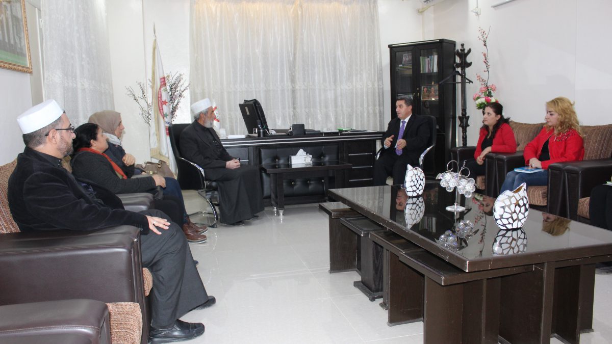 2018-11-19قام وفد من “مركز ملتقى الأديان” مؤلف من كل من السادة: ملا محمد غرزي رئيس اتحاد علماء المسلمين وعضو في ملتقى الأديان، نائبه عبد الرحمن بدرخان، دلال خليل رئيسة اتحاد مؤسسات المرأة المسلمة وعضوة في ملتقى الأديان والأستاذة ليلى إبراهيم عضوة في مركز ملتقى الأديان بزيارة لمكتب العلاقات الخارجية للإدارة الذاتية في شمال وشرق سوريا في 19/11/2018, حيث تم الترحيب برحابة صدر بالوفد الضيف من قبل كل من الرئيس المشترك للمكتب د. عبد الكريم عمر، نائبته سناء دهام وأعضاء آخرون أفين علي، ستير يوسف ورانيا خليل.