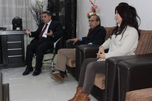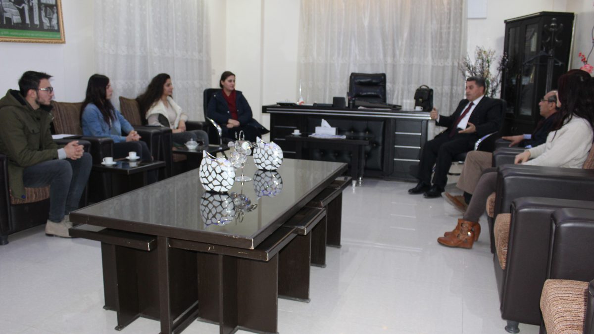 2018-12-24قام أعضاء من أكاديمية الصحة في مدينة قامشلو وهم السادة: ميتان محمد صالح ميرزا، سوزان عبد الجبار نبو وليلاف محمد أمين بزيارة لمكتب العلاقات الخارجية في 16/12/2018, حيث تم الترحيب بهم برحابة صدر من قبل الرئيس المشترك لمكتب العلاقات الخارجية للإدارة الذاتية في شمال وشرق سوريا د. عبد الكريم عمر ونوابه السيدة سناء دهام و السيد فنر الكعيط.