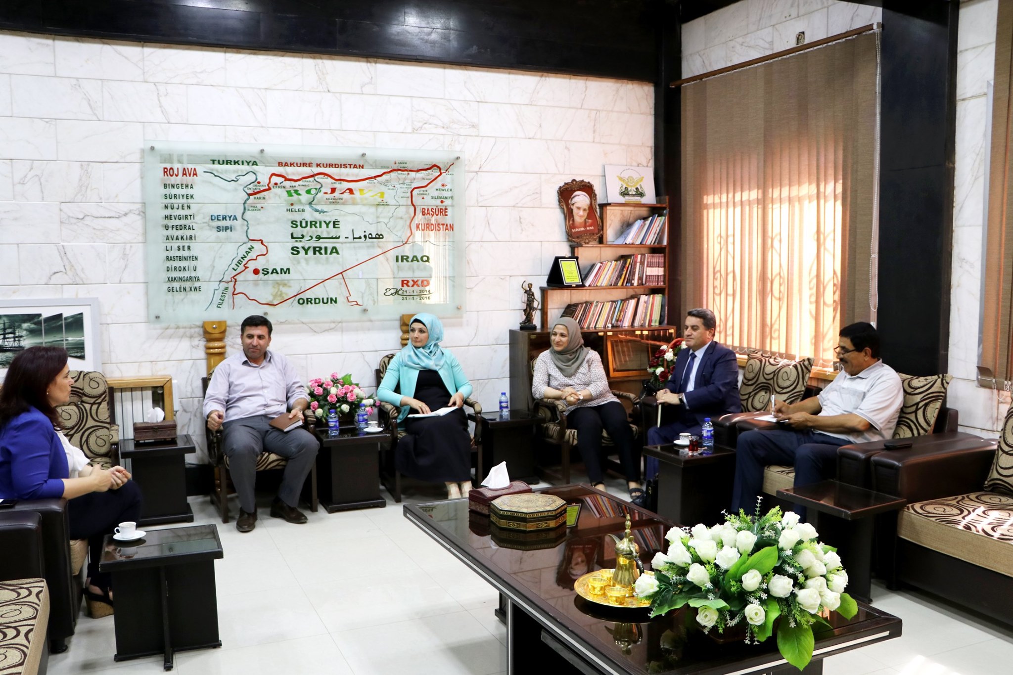 وفد من شوبدارين روجيه للثقافة (şopdarên rojê ya çandê) برئاسة الإدارية الكاتبة هيفا حسن في زيارة اليوم الأحد لدائرة العلاقات الخارجية في قامشلو.