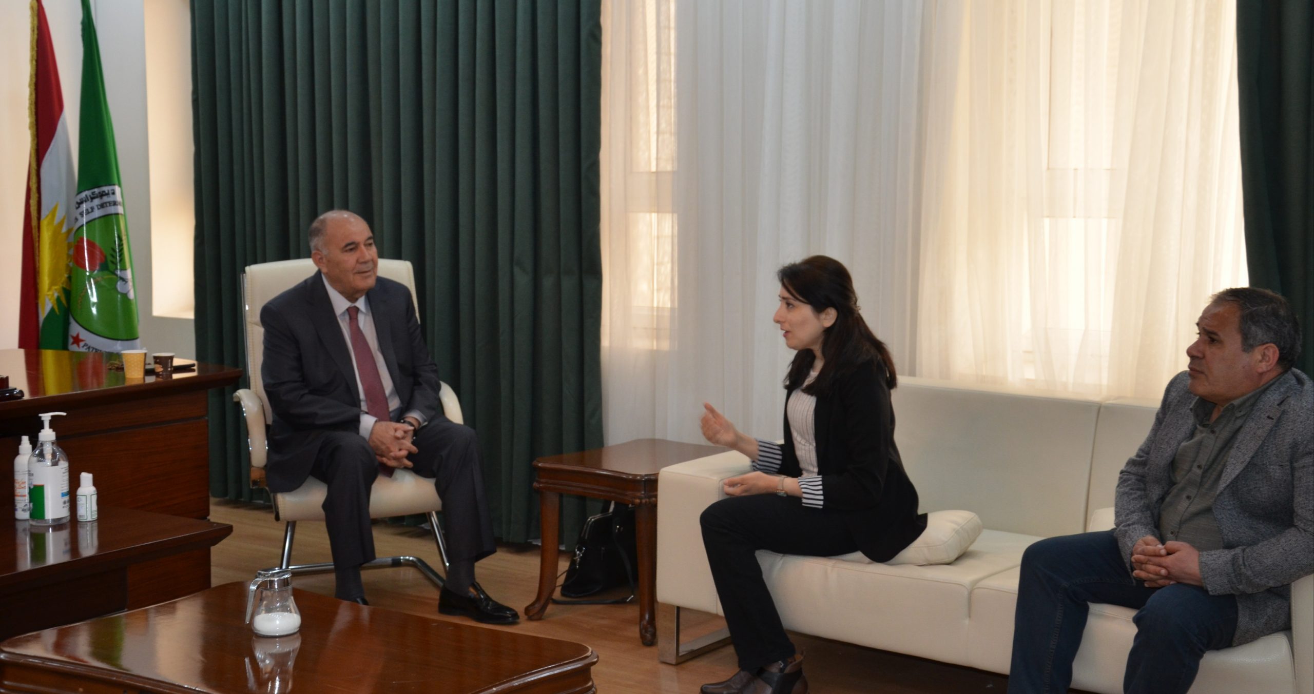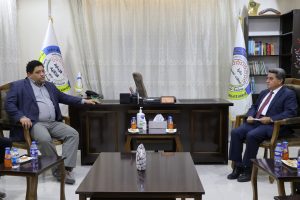 تم استقباله من قبل الرئيس المشترك الدكتور “عبد الكريم عمر”، ونائب الرئاسة المشتركة السيد “فنر الكعيط”، والمتحدث الرسمي السيد “كمال عاكف”، ومديرة المكتب الرئاسي السيدة “نافية محمد”.