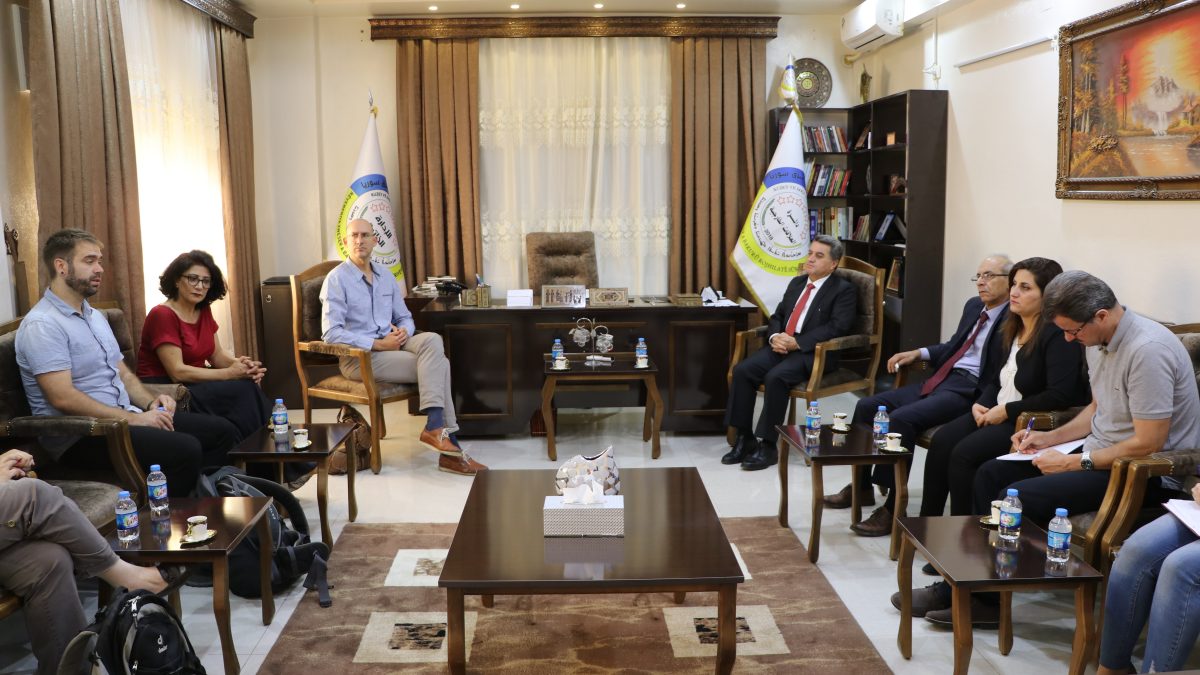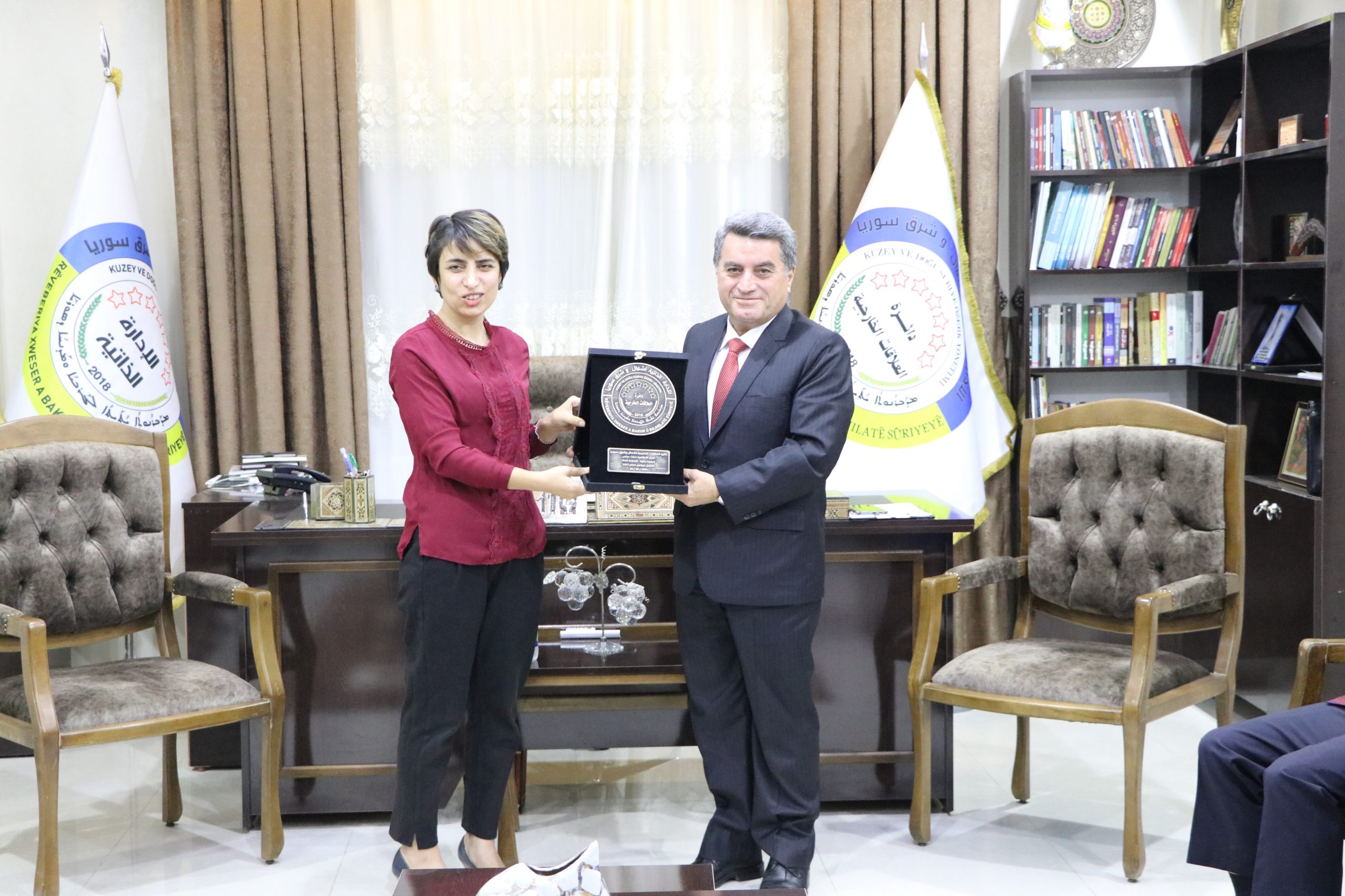 وتم استقبالهم من قبل الرئيس المشترك لدائرة العلاقات الخارجية عبدالكريم عمر ونائب الرئاسة المشتركة فنر الكعيط وعضوا الهيئة الإدارية سناء دهام وعبدالرحمن سلمان.