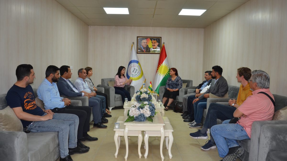 2022-06-09استقبلت ممثلية الإدارة الذاتية لشمال وشرق سوريا في إقليم كردستان متمثلة بممثلة الإدارة الذاتية أفين سويد وعضوي الهيئة الإدارية للممثلية فتح الله حسيني وجميل رحمانو وممثلة مؤتمر ستار ليمان شويش وعضوي علاقات حزب الاتحاد الديمقراطي في إقليم كردستان مرفان حسن وايفان وزير اليوم الخميس وفداً من “مجموعة السلام من أجل كردستان” القادم من أوروبا برئاسة روناك عزيز.