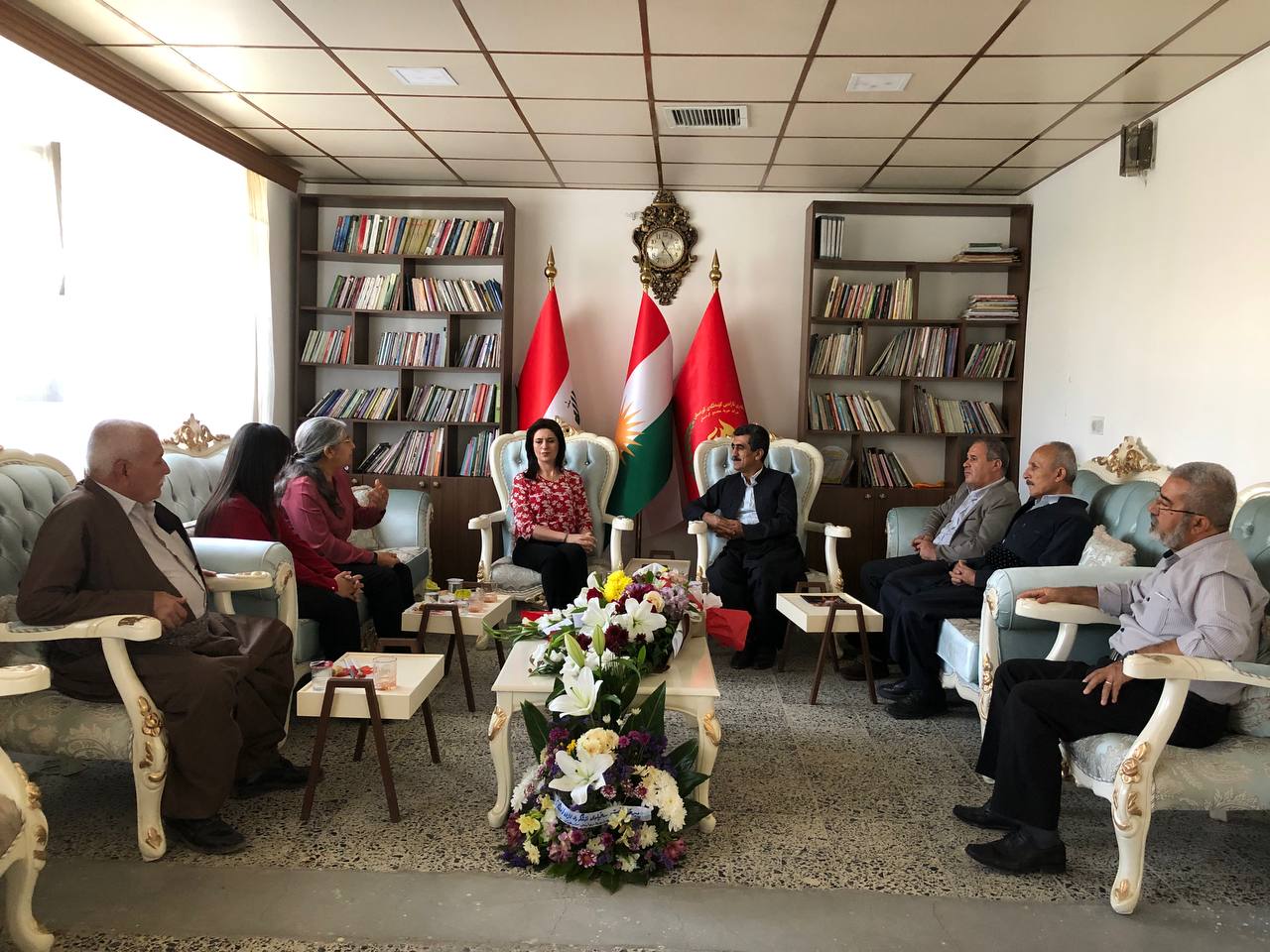 وتم استقبال الوفد من قبل الرئاسة المشتركة لدائرة العلاقات الخارجية السيد “بدران جيا كرد”، ونائبا الرئاسة المشتركة السيد “فنر الكعيط”، والسيد “روبيل بحو”، والسيد “خالد إبراهيم” عضو الهيئة الإدارية.