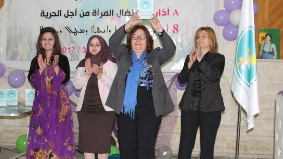 أثناء الاحتفال تم تكريم المنظمات النسائية في المقاطعة من قبل هيئة المرأة, ومن بين السادة المكرَمين سهام قريو كونها مسؤولة الاتحاد النسائي السرياني- فرع الحسكة.