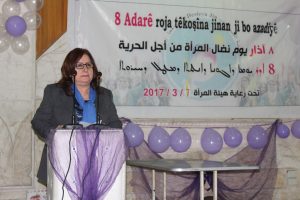 2017-03-12بمناسبة 8 آذار ” يوم المرأة العالمي ” قامت عضوات هيئة العلاقات الخارجية الرئيسة المشتركة للهيئة سهام قريو, النائبة المشتركة سناء دهام, زوزان خلف, نوفين ابراهيم , ميرنا صليبا و باقي العضوات.. بالمشاركة في الاحتفالية التي أقيمت في صالة الروابي بمدينة قامشلو، بحضور العشرات من النساء هيئة المرأة، عضوات مؤتمر ستار, الاتحاد النسائي السرياني، الهيئة الوطنية العربية , بالإضافة إلى ممثلات عن الإدارة الذاتية الديمقراطية.