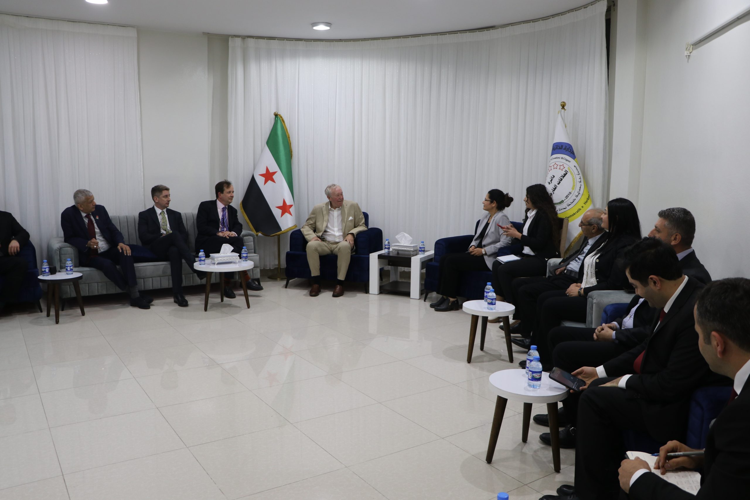 تم استقبالهم من قبل الرئاسة المشتركة لدائرة العلاقات الخارجية السيدة إلهام أحمد، والسيد فنر الكعيط، ونائبا الرئاسة المشتركة السيدة كلستان علي، والسيد روبيل بحو.