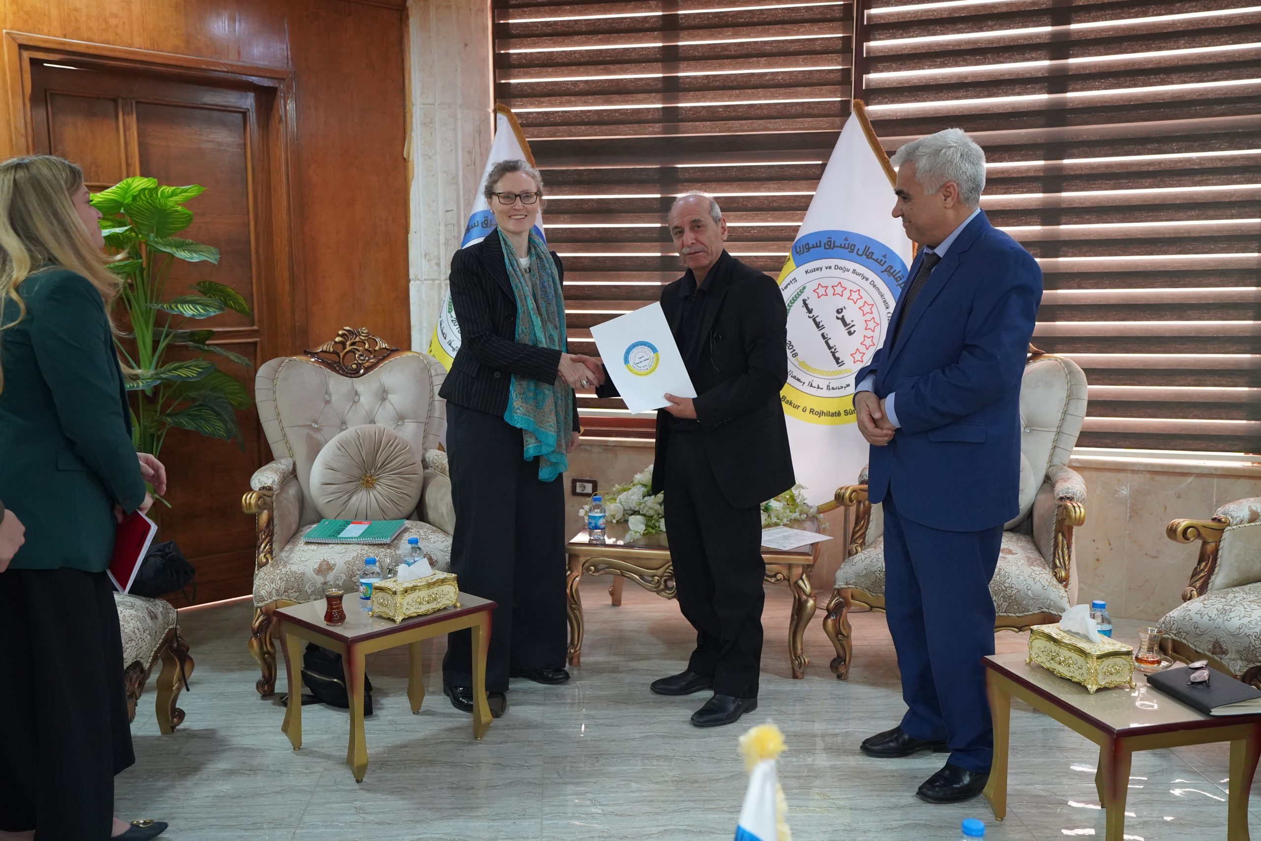 2025-04-19زار أمس الثلاثاء 15 نيسان 2025، وفد بريطاني برئاسة السيدة ماري شوكليدج نائبة مدير مكتب المملكة المتحدة لسوريا، والسيدة نيام كونولي السكرتيرة الثانية للشؤون السياسية في مكتب المملكة المتحدة لشؤون سوريا والوفد المرافق لهم، لمناطق شمال وشرق سوريا.
