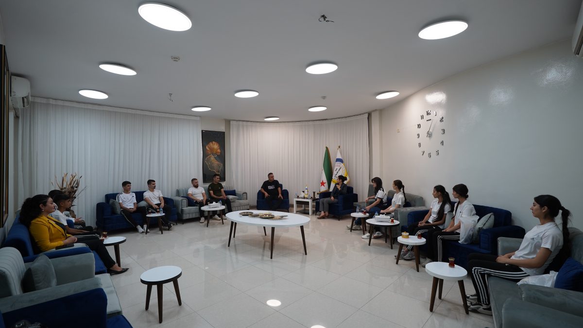 2025-08-12زار اليوم 9 آب 2025، وفداَ من مدرسة نمور التايكواندو برئاسة الماستر عبد العزيز عابي، والماستر دليار حسين مسؤولة قسم المرأة في المدرسة، والإداريين جاندار حسن، وسكفان منصور، وفلك إبراهيم، وعدد من الأبطال والبطلات المشاركين في المناسبات الدولية، لمقر دائرة العلاقات الخارجية في قامشلو.