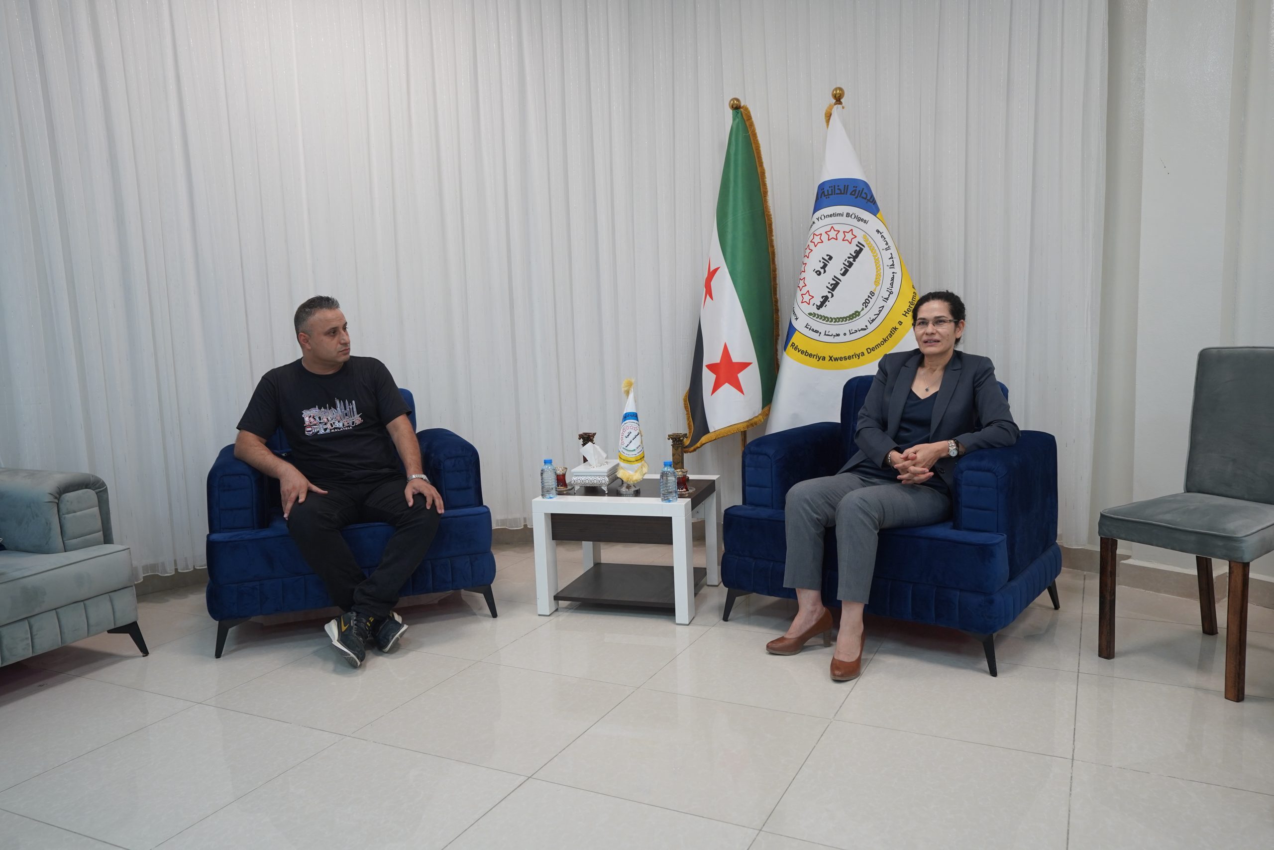 تم استقبالهم من قبل الرئيسة المشتركة لدائرة العلاقات الخارجية السيدة إلهام أحمد ونائبة الرئاسة السيدة كلستان علي.