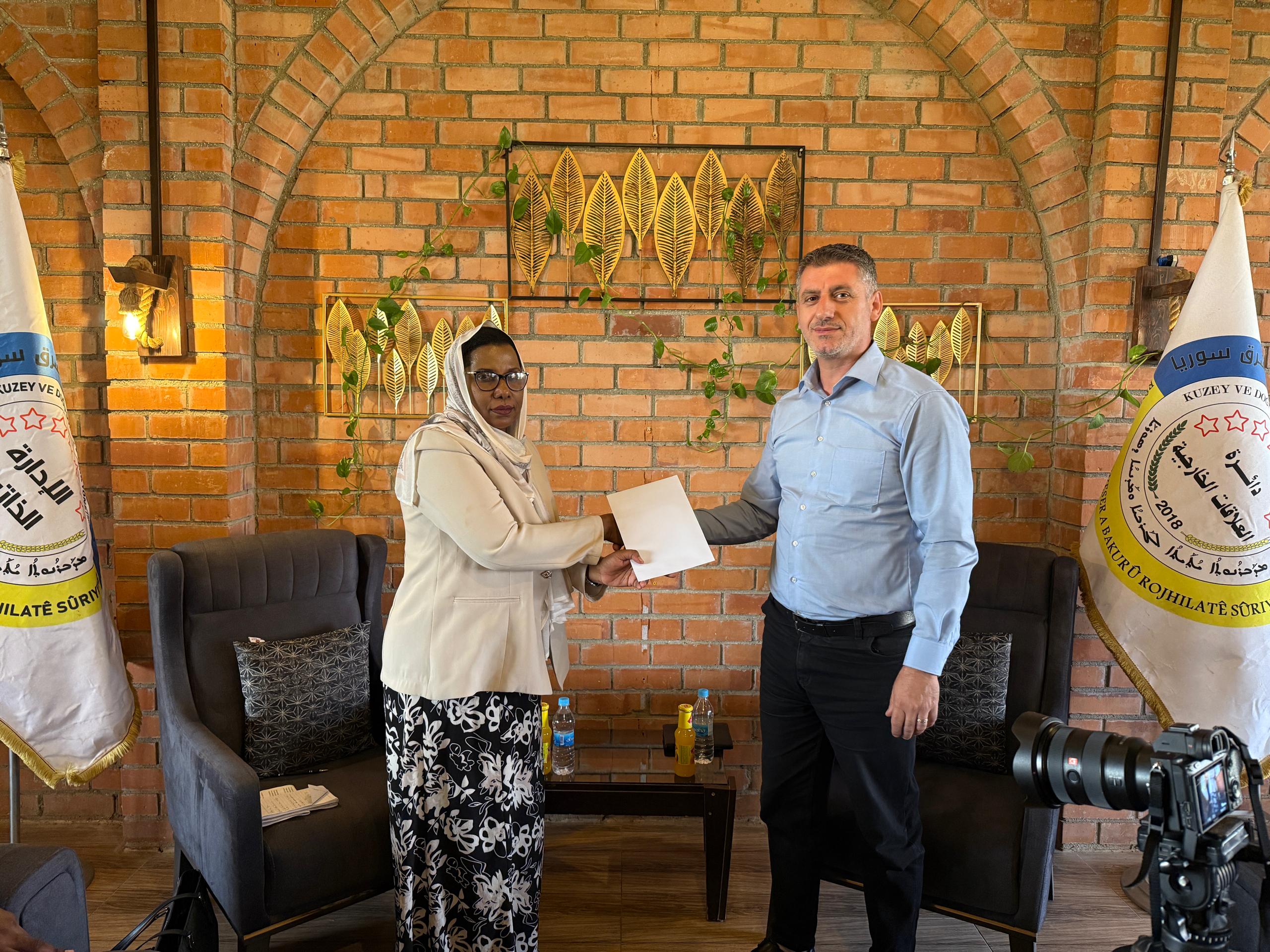 وكان في استقبال الوفد كل من السيد روبيل بحو، نائب الرئاسة المشتركة لدائرة العلاقات الخارجية، والسيد خالد إبراهيم، عضو الهيئة الإدارية، إلى جانب السيدة لانا حسين، ممثلة وحدات حماية المرأة (YPJ).