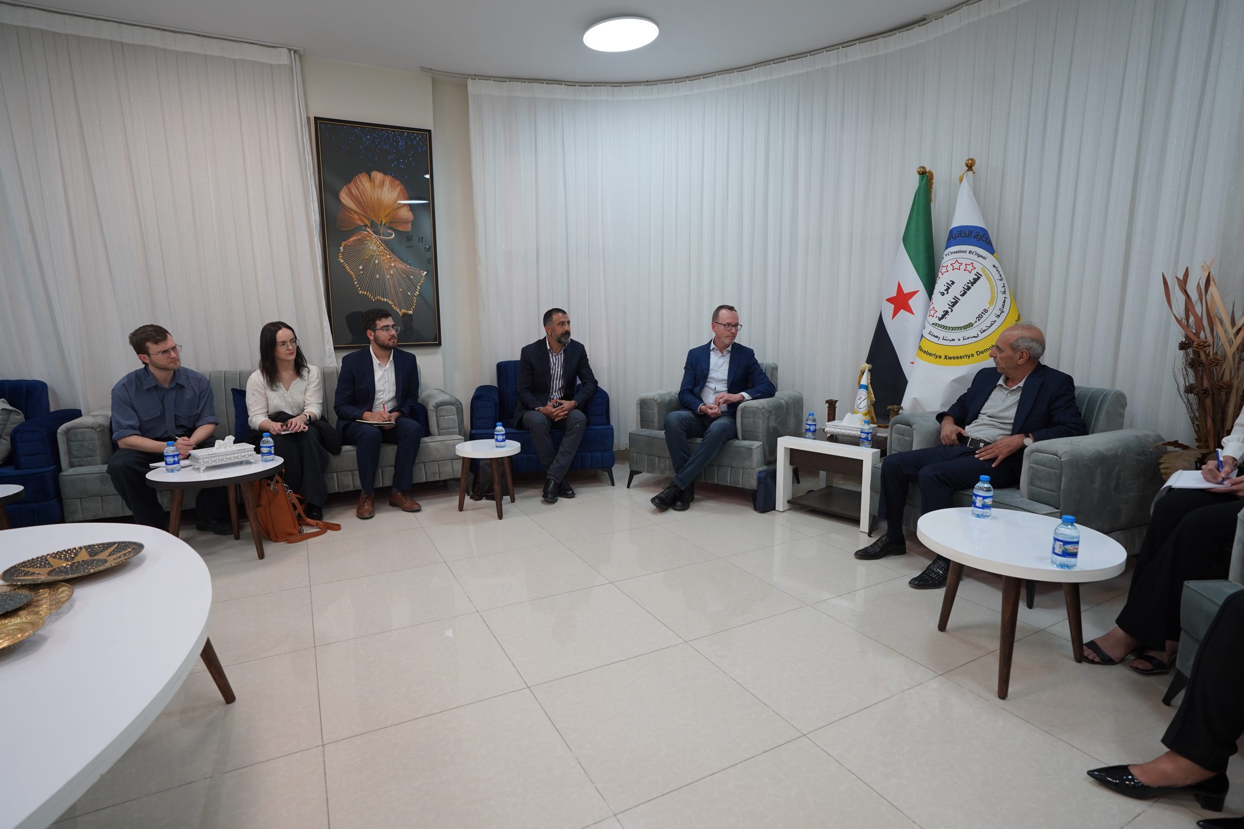 2025-09-28زار وفد اليوم الأحد 21 أيلول 2025، وفد أسترالي برئاسة السيد ديفيد شوبريدج عضو مجلس الشيوخ الأسترالي، والوفد المرافق له، لمقر دائرة العلاقات الخارجية، في قامشلو، في إطار جولة ميدانية للاطلاع على الواقع السياسي والاجتماعي والإنساني في المنطقة.