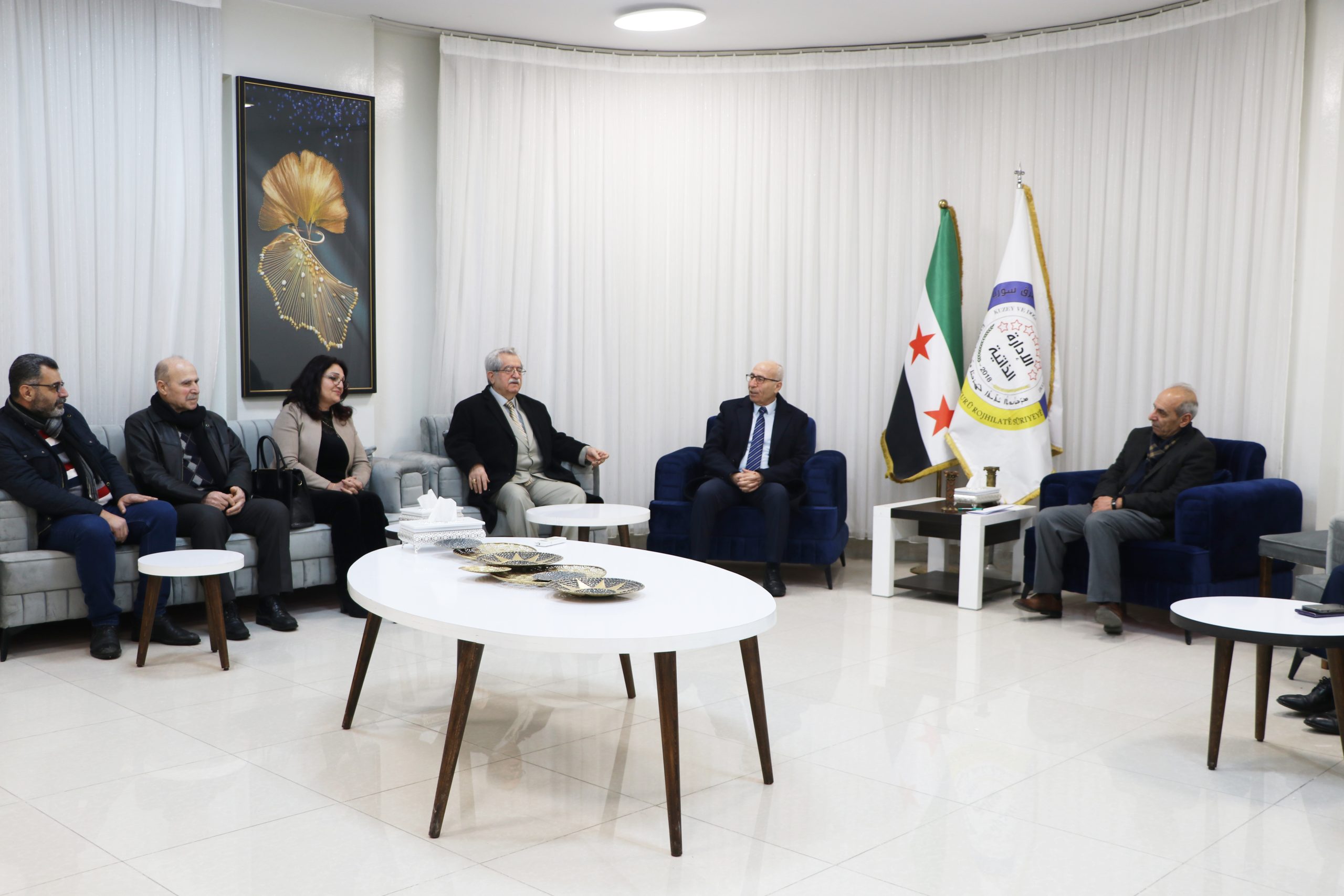 وكان في استقبال الوفد الرئيس المشترك لدائرة العلاقات الخارجية السيد فنر الكعيط، ونائبته السيدة كلستان علي، بحضور كل من الدكتور عبد الكريم عمر، والسيد حكمت الحبيب، والسيد رشاد حسين.